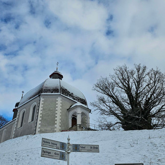 Es folgten die Gemeinden Oberwangen mit einer schönen Kapelle und einem anschliessenden Umweg wegen Holz Arbeiten, ein Autofahrer, der mit 60 Stundenkilometern an mir vorbeidonnerte und mich nass spritzte, sodass ich nasse Füsse hatte ab da. Die Gemeinde Fischingen mit dem Kloster und der heiligen Idda - dem Loch, wo ich meine Füsse zur Heilung hindurchstreckte. Dann die Gemeinde Au und der Aufstieg zu Allenwinden und am Schluss das Hörnli.